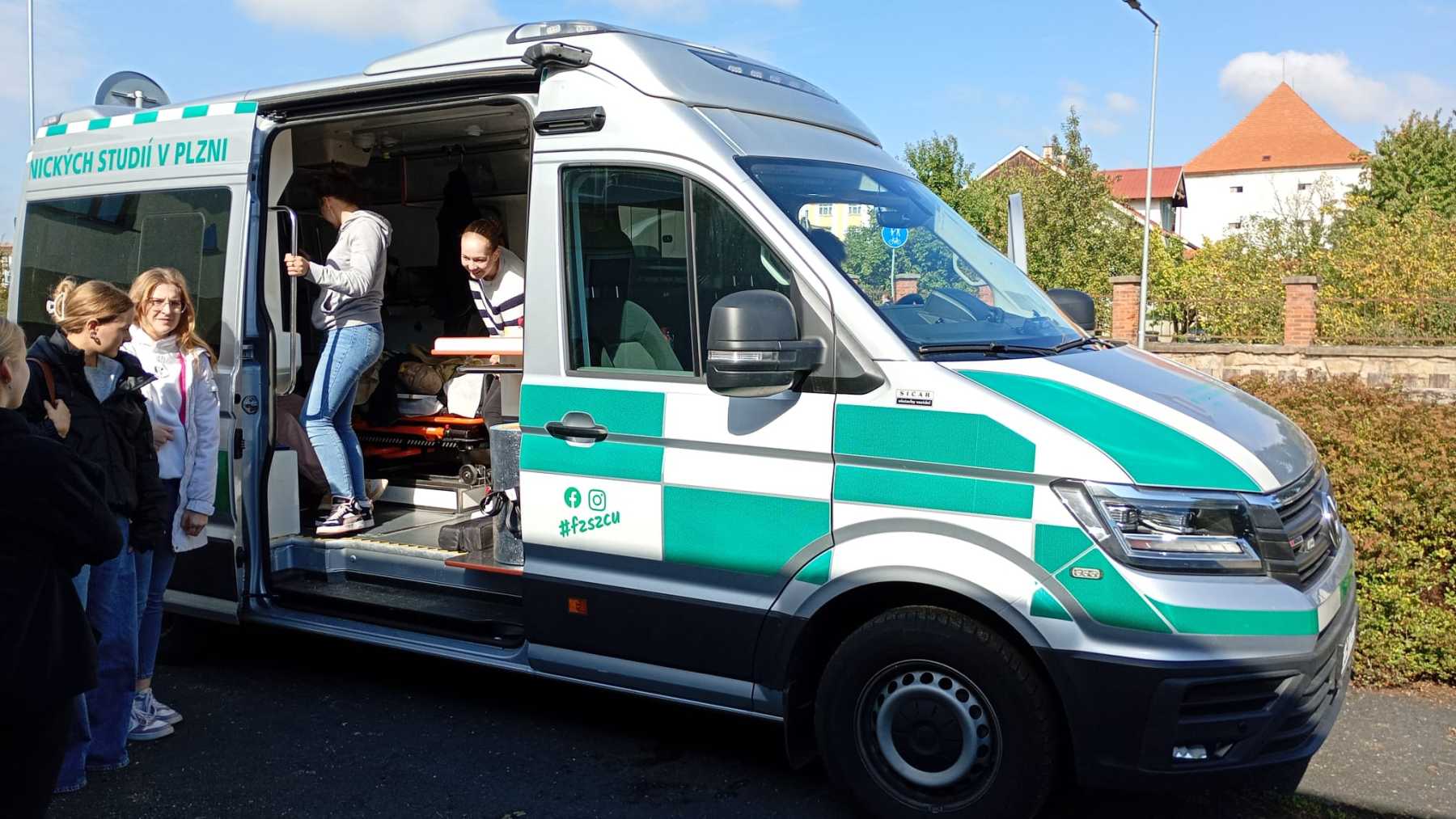Velkým zpestřením byla návštěva záchranářů, kteří dorazili ve fakultní sanitce, kterou si mohli žáci prohlédnout a dozvědět se více o jejím vybavení i chodu záchranné služby.