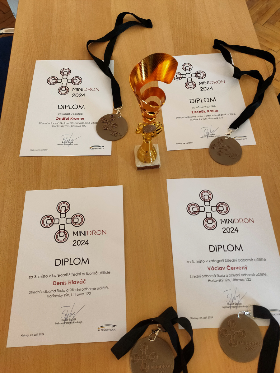 V úterý 24. září 2024 se uskutečnil v sále Střední školy zemědělské a potravinářské v Klatovech druhý ročník soutěže „MINIDRON 2024“, kterou pořádá Plzeňský kraj ve spolupráci se Střední školou zemědělskou a potravinářskou, Národních mučedníků 141 a Středním odborným učilištěm elektrotechnickým, Vejprnická 56, Plzeň. Naše škola se na soutěži podílela nejen svou účastí dvou týmů, ale také zprostředkovala pohoštění pro účastníky soutěže.