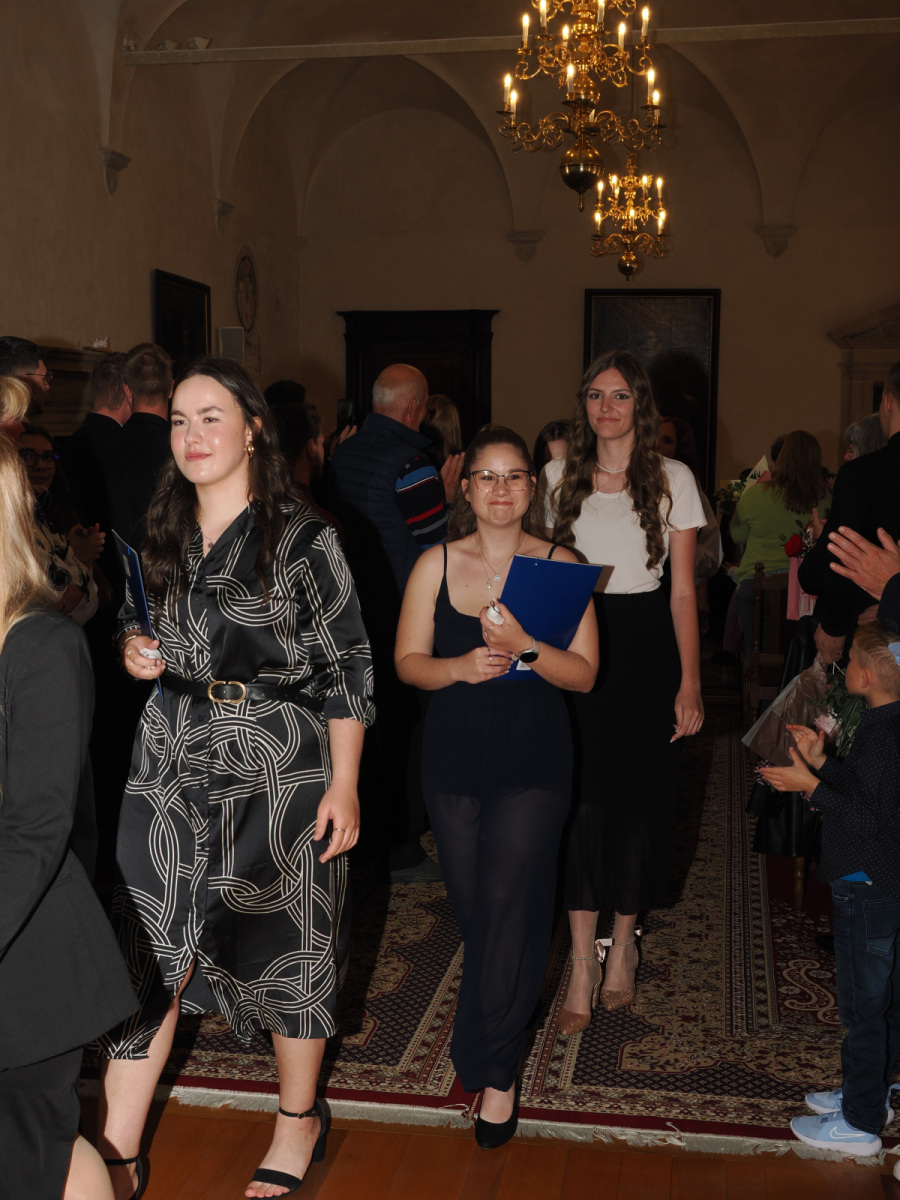 Jako každý rok i letos jsme úspěšným maturantům předávali maturitní vysvědčení v prostorách zámku Horšovský Týn. Absolventi oboru Předškolní a mimoškolní pedagogika a nástavbového oboru Podnikání si převzali dokument, který stvrzuje dosažení úplného středního vzdělání, v Erbovním sále a absolventi oboru Agropodnikání si tento dokument převzali v bývalé zámecké kapli. Maturitní vysvědčení jim předávali osoby nadmíru povolané, a to třídní učitelé Mgr. Jiří Blahník, Mgr. Barbora Lengálová a Mgr Michaela Grimm. Za hostování na slavnostním předávání maturitních vysvědčení děkujeme starostovi města Horšovský Týn Ing. Josefu Holečkovi, za moderování patří velký dík paní Miloslavě Baxové a za hudební doprovod děkujeme Mgr. Barboře Lengálové a žákyním oboru Předškolní a mimoškolní pedagogiky Anně Skálové a Natálii Želinské. Děkujeme také starostovi města Horšovský Týn Ing. Josefu Holečkovi, radnímu města Ing. Jaroslavu Vlasákovi a kastelánovi Státního hradu a zámku Horšovský Týn panu Janu Rosendorfskému za poskytnutí krásných prostor, ve kterých jsme předávání mohli zorganizovat. Našim absolventům přejeme hodně štěstí a úspěchů v životě.