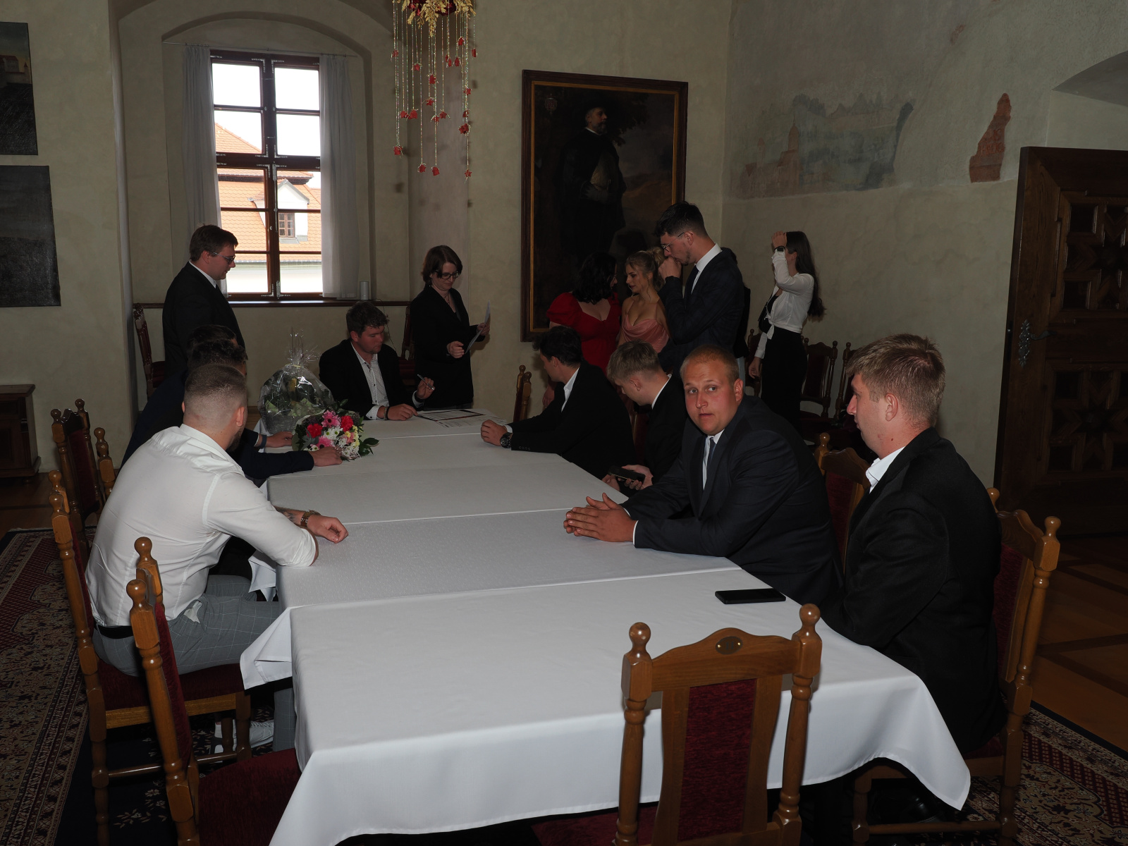 Jako každý rok i letos jsme úspěšným maturantům předávali maturitní vysvědčení v prostorách zámku Horšovský Týn. Absolventi oboru Předškolní a mimoškolní pedagogika a nástavbového oboru Podnikání si převzali dokument, který stvrzuje dosažení úplného středního vzdělání, v Erbovním sále a absolventi oboru Agropodnikání si tento dokument převzali v bývalé zámecké kapli. Maturitní vysvědčení jim předávali osoby nadmíru povolané, a to třídní učitelé Mgr. Jiří Blahník, Mgr. Barbora Lengálová a Mgr Michaela Grimm. Za hostování na slavnostním předávání maturitních vysvědčení děkujeme starostovi města Horšovský Týn Ing. Josefu Holečkovi, za moderování patří velký dík paní Miloslavě Baxové a za hudební doprovod děkujeme Mgr. Barboře Lengálové a žákyním oboru Předškolní a mimoškolní pedagogiky Anně Skálové a Natálii Želinské. Děkujeme také starostovi města Horšovský Týn Ing. Josefu Holečkovi, radnímu města Ing. Jaroslavu Vlasákovi a kastelánovi Státního hradu a zámku Horšovský Týn panu Janu Rosendorfskému za poskytnutí krásných prostor, ve kterých jsme předávání mohli zorganizovat. Našim absolventům přejeme hodně štěstí a úspěchů v životě.