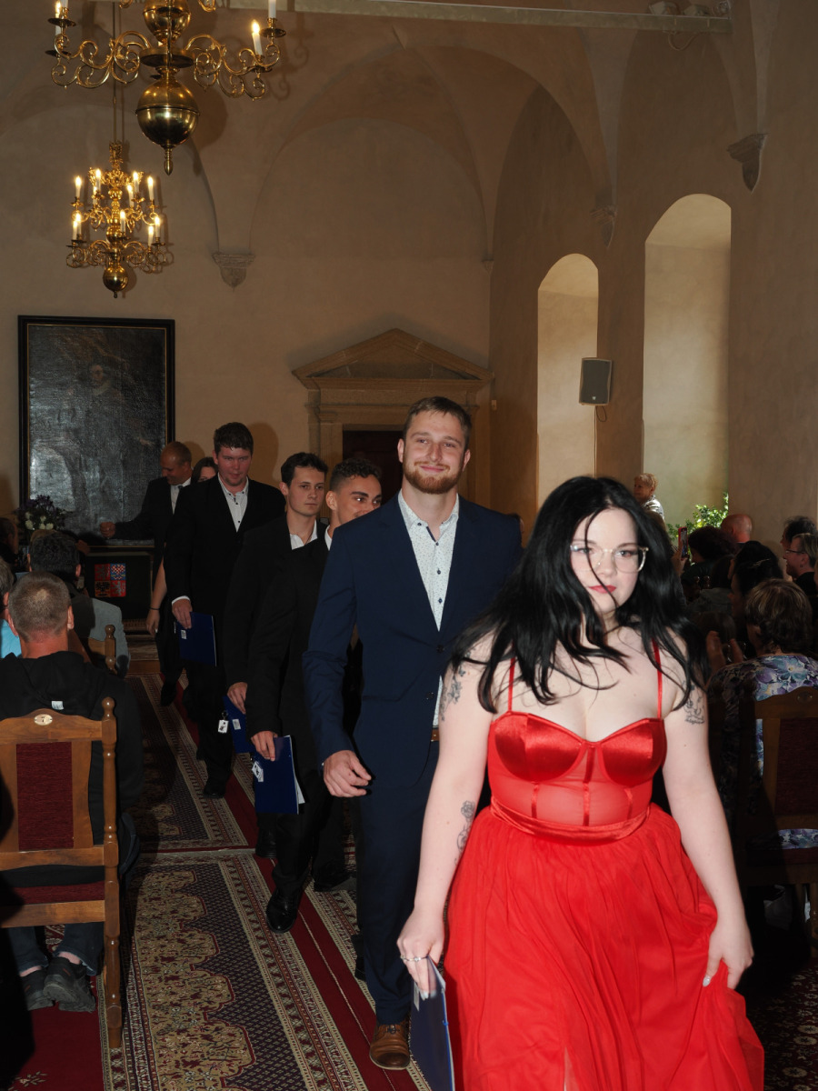 Jako každý rok i letos jsme úspěšným maturantům předávali maturitní vysvědčení v prostorách zámku Horšovský Týn. Absolventi oboru Předškolní a mimoškolní pedagogika a nástavbového oboru Podnikání si převzali dokument, který stvrzuje dosažení úplného středního vzdělání, v Erbovním sále a absolventi oboru Agropodnikání si tento dokument převzali v bývalé zámecké kapli. Maturitní vysvědčení jim předávali osoby nadmíru povolané, a to třídní učitelé Mgr. Jiří Blahník, Mgr. Barbora Lengálová a Mgr Michaela Grimm. Za hostování na slavnostním předávání maturitních vysvědčení děkujeme starostovi města Horšovský Týn Ing. Josefu Holečkovi, za moderování patří velký dík paní Miloslavě Baxové a za hudební doprovod děkujeme Mgr. Barboře Lengálové a žákyním oboru Předškolní a mimoškolní pedagogiky Anně Skálové a Natálii Želinské. Děkujeme také starostovi města Horšovský Týn Ing. Josefu Holečkovi, radnímu města Ing. Jaroslavu Vlasákovi a kastelánovi Státního hradu a zámku Horšovský Týn panu Janu Rosendorfskému za poskytnutí krásných prostor, ve kterých jsme předávání mohli zorganizovat. Našim absolventům přejeme hodně štěstí a úspěchů v životě.