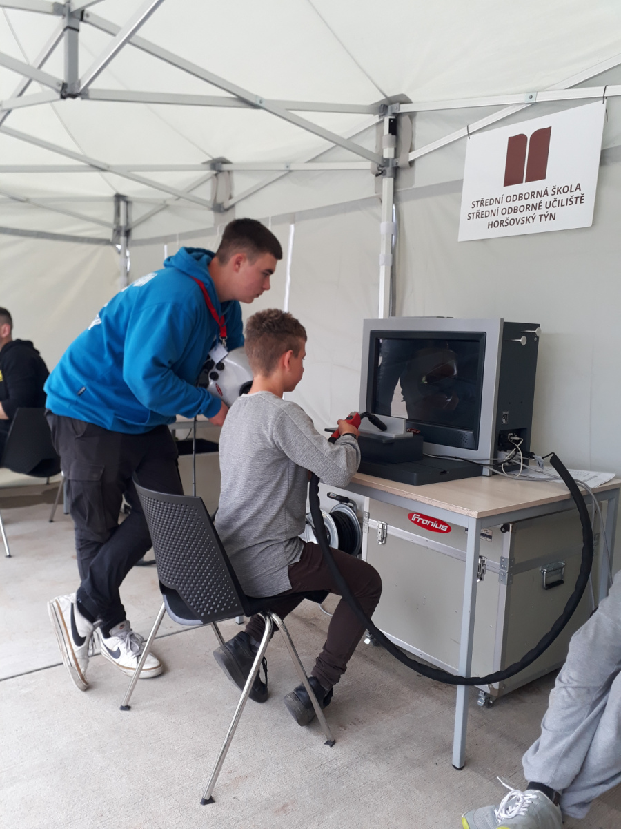 V sobotu 15. 6. 2024 se dva žáci 2. ročníku oboru Opravář zemědělských strojů zúčastnili prezentace naší školy na rodinném dni společnosti Daimler Buses Česká republika s.r.o. v Holýšově. Tradiční akce s bohatým doprovodným programem byla uspořádána především pro zaměstnance a jejich rodinné příslušníky. Jelikož tato regionálně významná společnost již dlouhodobě úzce spolupracuje s naší školou a podporuje žáky v jejich budoucím uplatnění, měli jsme možnost prezentovat všem návštěvníkům nabídku studijních a učebních oborů. Naši žáci se zde opět prezentovali simulací svařování prostřednictvím svařovacího trenažéru. Zájemcům vždy ochotně a trpělivě pomáhali k dosažení maximálního skóre a spokojenosti s výsledkem simulace. Také letos se objevilo mnoho talentovaných „virtuálních“ svářečů jak mezi dospělými, tak i mezi dětmi. Děkuji oběma žákům za to, že se ve svém volném víkendovém čase dobrovolně zúčastnili této akce.