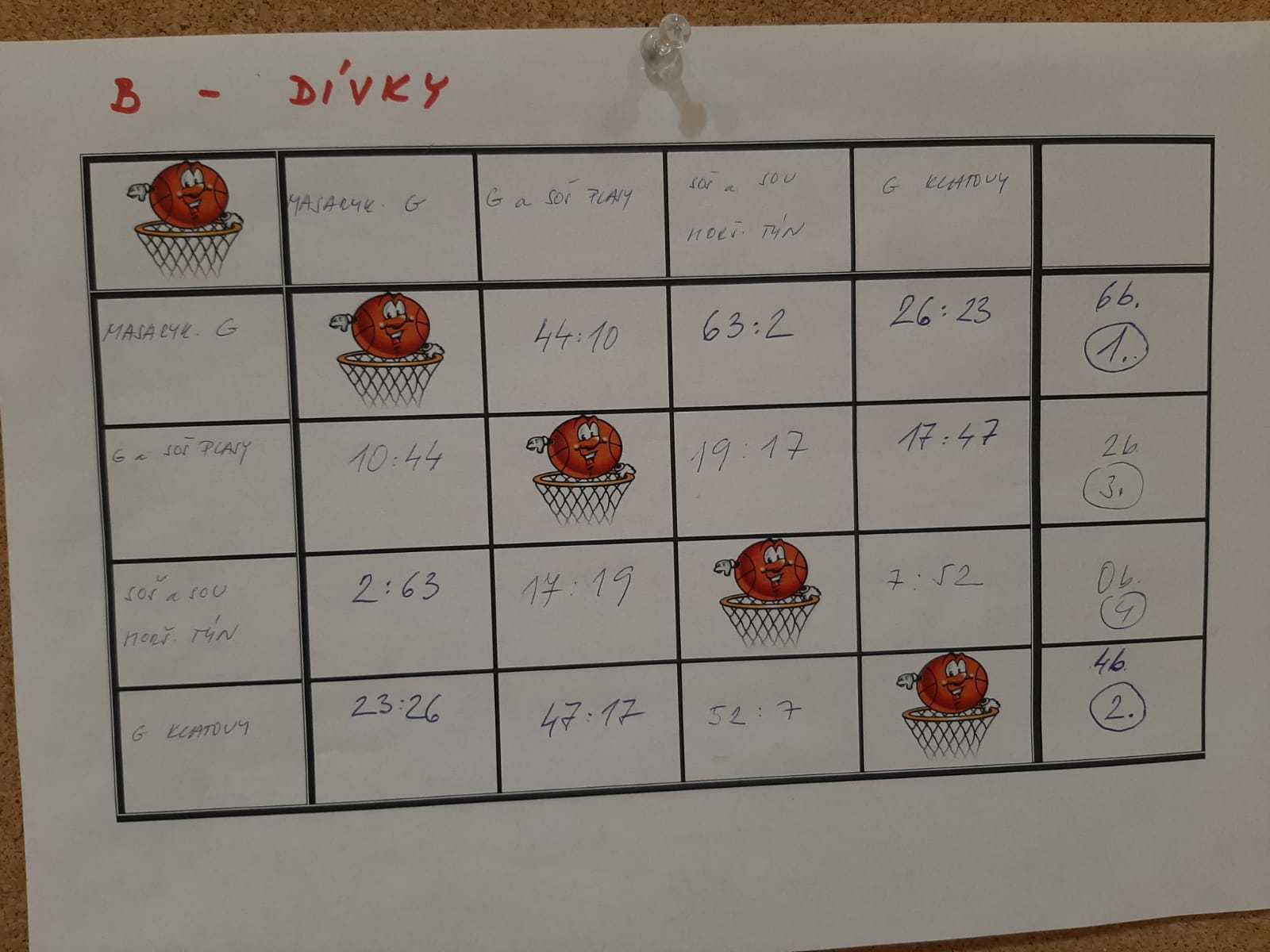 V pondělí 4. listopadu jsme se již po několikáté zúčastnili krajského kola v basketbalu dívek, které pořádala již tradičně SPŠ stavební Plzeň ve sportovní hale Lokomotivy Plzeň. V konkurenci čtyř středních škol jsme v úvodním střetnutí narazili na hráčky Masarykova gymnázia Plzeň. Během dvaceti minut jsme velkému tlaku vzdorovali jen v úvodu, poté si soupeřky otevřely doslova střelnici a vyhrály v poměru 2:63. Druhé naše utkání proti gymnazistkám z Klatov mělo podobný průběh s mírnějším výsledným skóre 7:52. V bitvě o konečné třetí místo proti dívkám z Plas jsme odehráli vyrovnané utkání, bohužel nám v závěru chyběla přesnost v zakončení a po prohře 17:19 jsme se rozloučili posledním místem.
