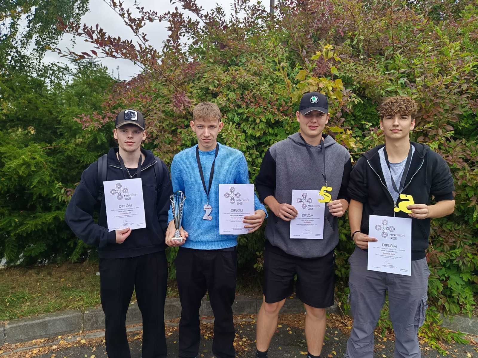 Dne 23. září 2025 se v Klatovech konalo krajské kolo soutěže Minidron 2025, kterého se zúčastnili i žáci naší školy – Denis Hlaváč, Václav Červený, Dominik Orlík a Libor Šmíd.